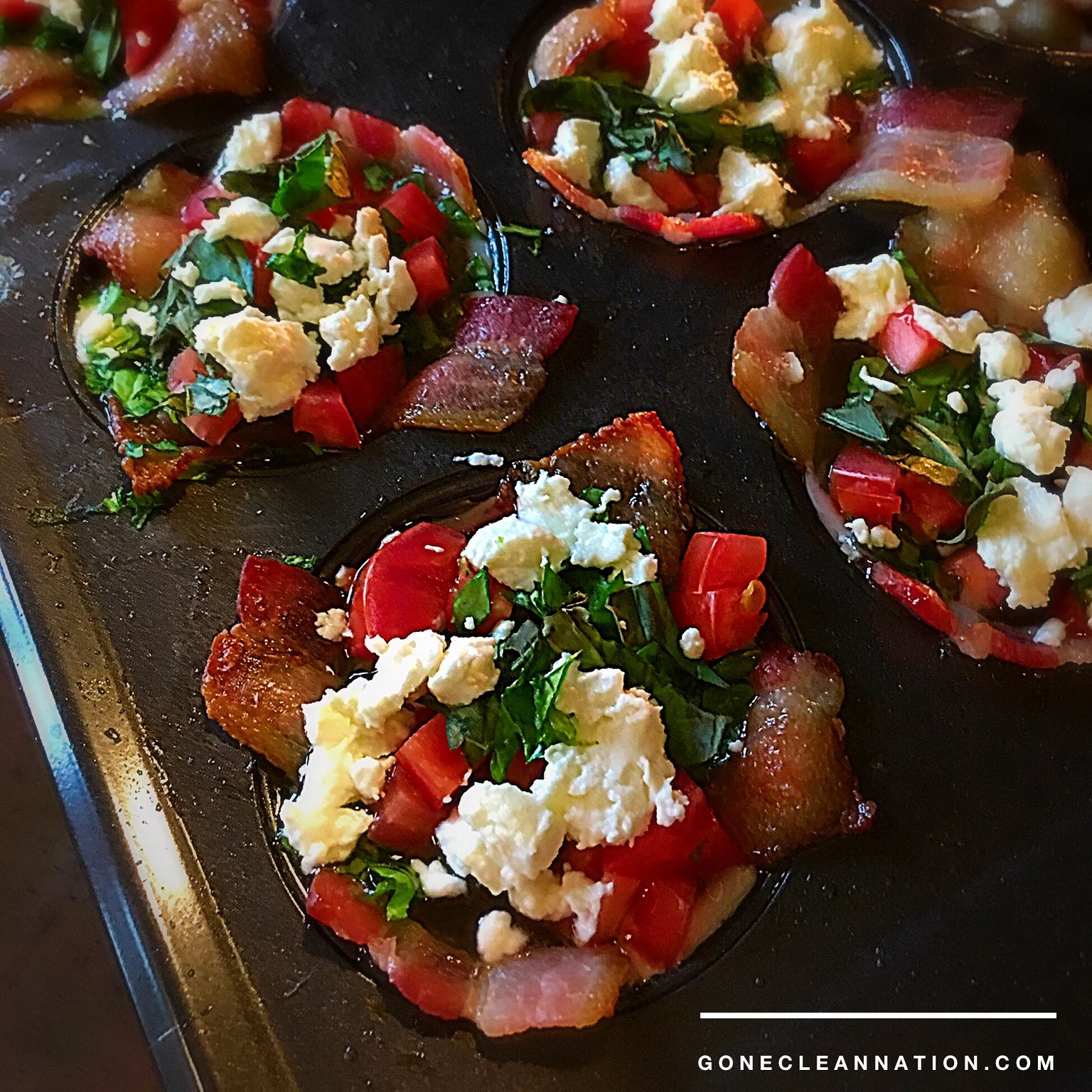 *UPDATE 2019- Since I originally created this recipe I have changed one element. I no longer use a full slice of bacon for each muffin cup. I now use silicone muffin liners. You can find them here : Muffin Liners . Half a slice of bacon per cup is more than enough. I found that the muffin liners make removal and clean up SO much easier. And also the full slice of bacon was just too overpowering. So with the muffin liners I just place 1/2 a slice of bacon in the bottom, crack the egg on top and then add the toppings. Then I just pop em’ in the over that it preheated to 350 degrees and cook them for 30 min. This saves time, extra unnecessary fat and grease, and of course saves money by using less bacon! Enjoy! Trina xoxo